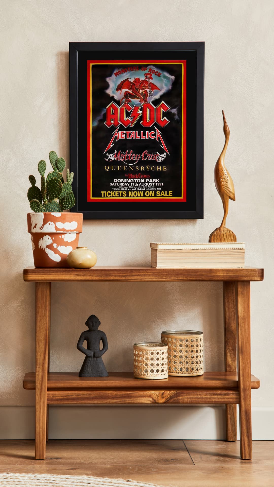 This poster is from the 1991 Monsters of Rock festival at Donington Park. Metallica, AC/DC and Mötley Crüe shared the same stage that year.