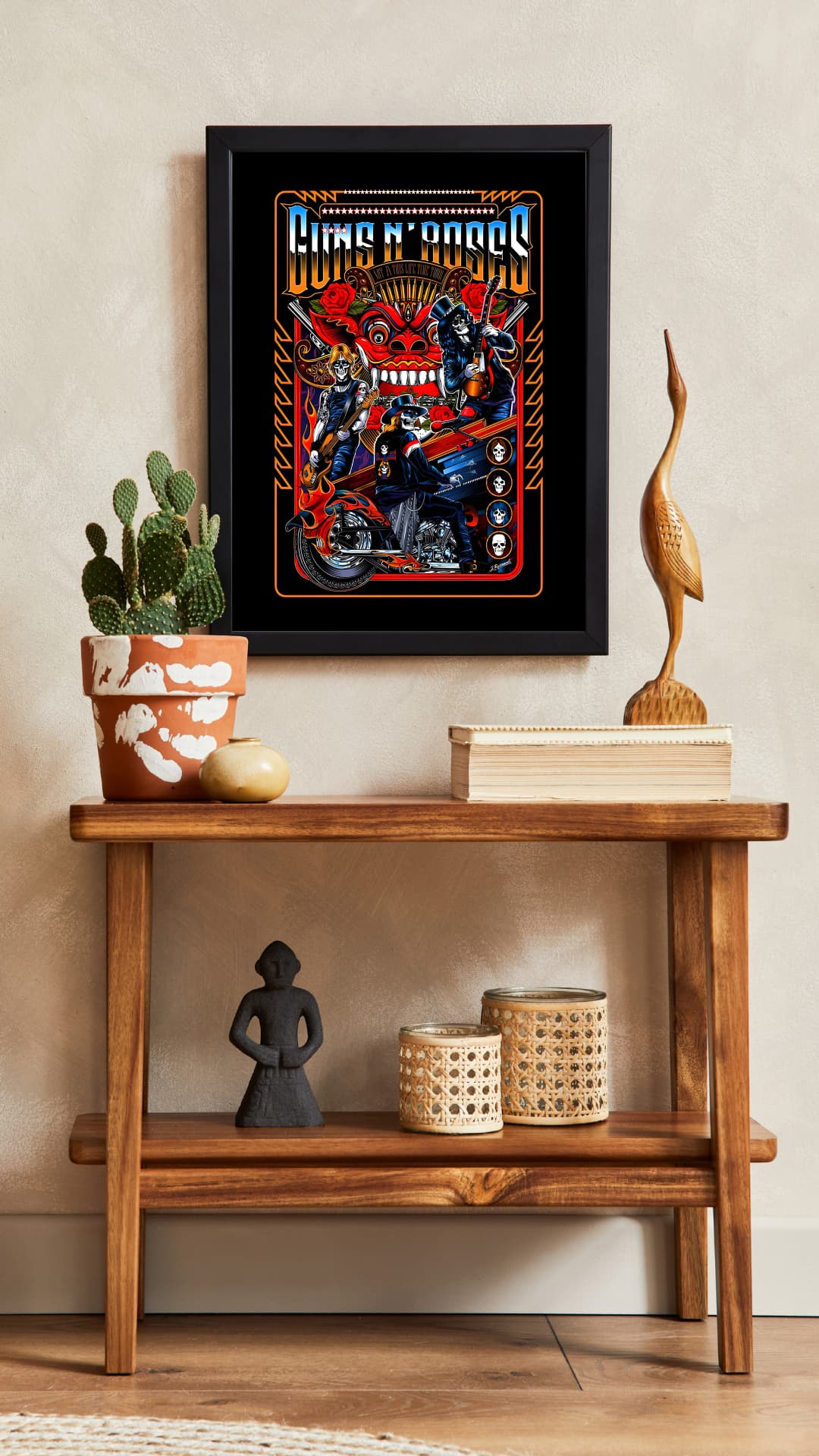 This rare poster draws from the late eighties GNR touring era, when the band was playing long, high-energy sets and building a reputation for unpredictable shows. The artwork style reflects the bold, gritty visuals associated with their early promotional material.